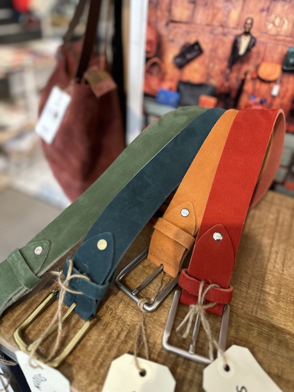 De magnifiques ceintures dans un cuir nubuck de toutes les couleurs. Ne vous inquiétez pas il y a également du cuir classique.