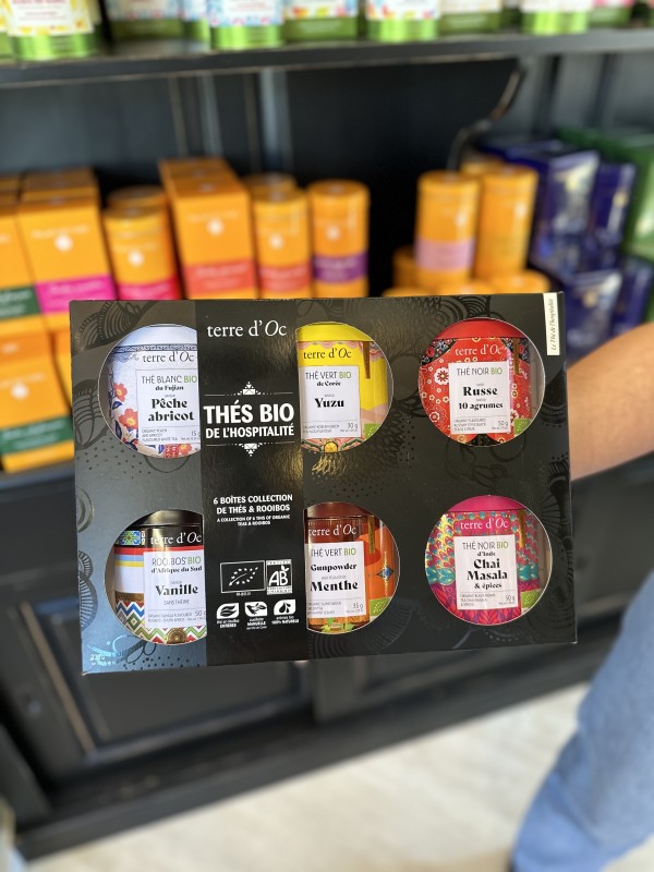 Ce qui est sympathique chez Terre d’Oc, ce sont ses coffrets. Un mélange de plusieurs thés, de plusieurs infusions, ce qui permet de faire découvrir la marque et les produits. Une valeur sûre, si vous voulez faire connaître des thés spécifiques à un ou une amatrice de thés.