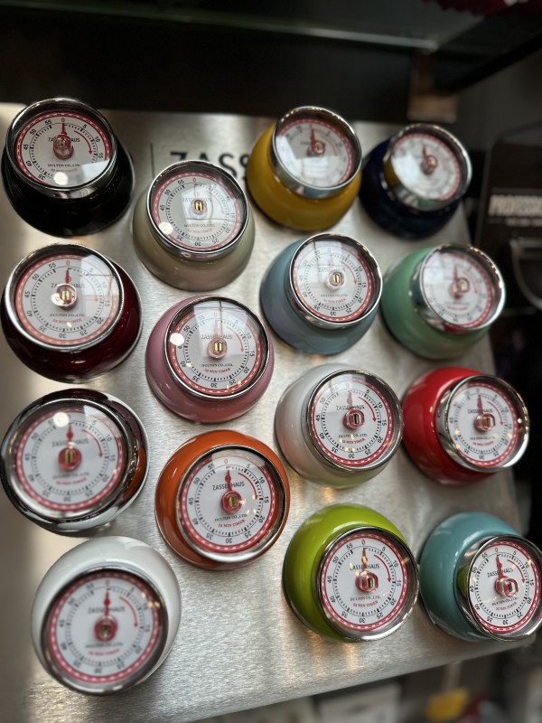 - Minuteurs : et oui, ça vous paraît peut-être bizarre, mais un minuteur est toujours bien utile. Ces minuteurs design au look retro sont mécaniques. Pensez bien à les remonter afin que la sonnerie puisse bien retentir.