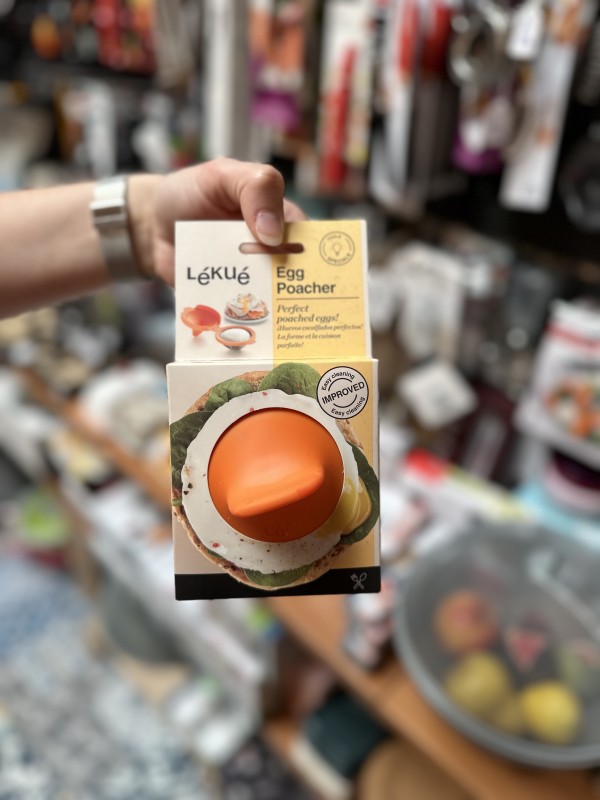 - Le cuit œuf ou pocheuse à œuf de chez Lekué. Enfin une pocheuse digne de ce nom ! pourtant nous avons vu plein de modèles, mais celle-ci est géniale. Rien de plus simple : vous prenez un verre afin de placer votre support ouvert dans ce verre pour qu’il tienne. Ensuite vous avez ainsi vos deux mains de libre pour casser votre œuf ; Fermez ensuite la pocheuse, et mettez dans l’eau bouillante. Et c’est tout !