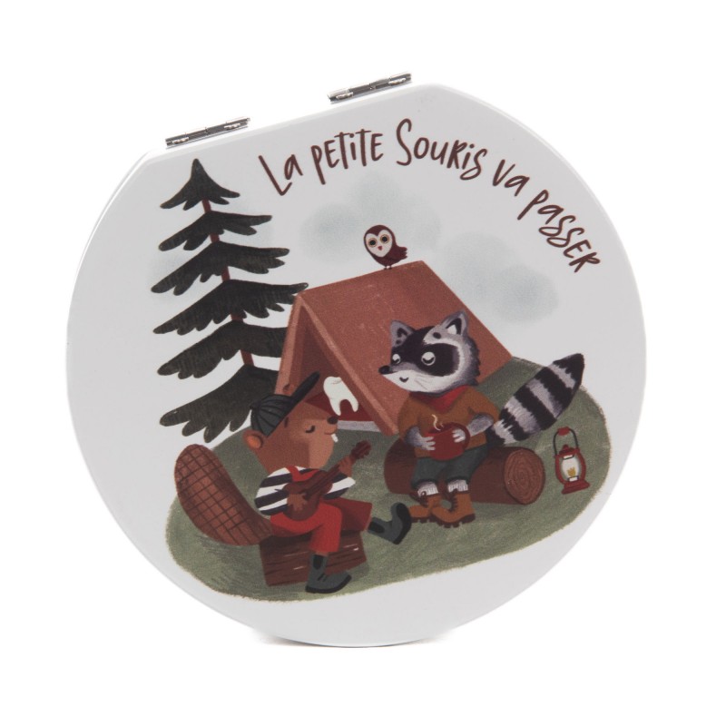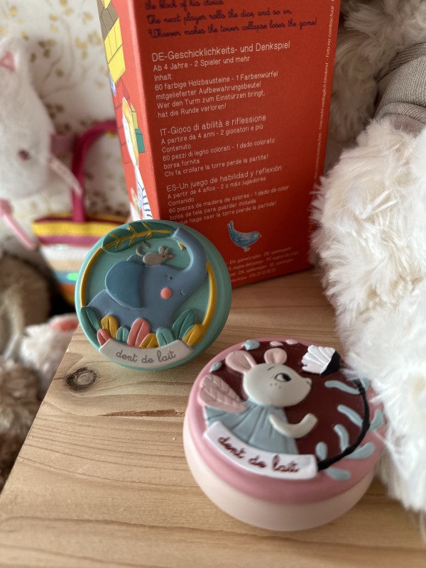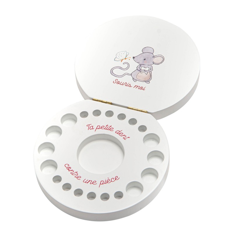 Nous vous proposons donc de la marque Moulin Roty, les fameuses boîtes à dents de lait. En plus, elles sont sublimes. Plusieurs designs sont disponibles. Que ce soit pour une petite fille, un petit garçon, ou bien que vous préféreriez un modèle plus mixte. Elles sont rondes de taille idéale.