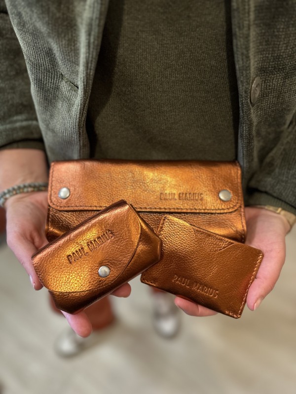 Oups ! N’oublions pas les accessoires de petite maroquinerie : le portefeuille Charlotte, le portefeuille Manon, le Gustave, la trousse de Paul, ou encore l’étui à lunettes.
