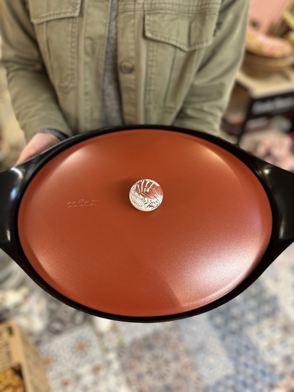 D’ailleurs, en achetant la cocotte (peu importe son diamètre), vous pourrez choisir votre poignée et votre manique.
