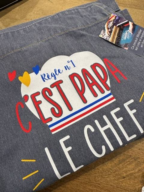 Nous vous proposerons notamment un tablier pour un grand cuisinier, ou devrais-je dire, pour un chef !