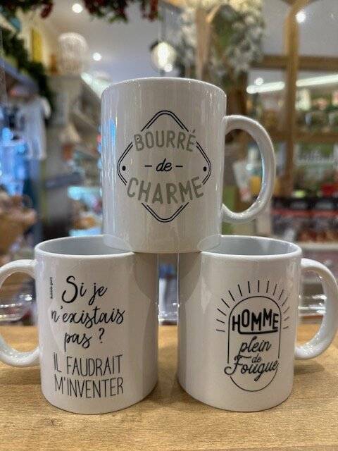 Pourquoi pas lui offrir une tasse avec un message comme « bourré de charme » ? ou encore avec « homme plein de fougue », ou « si je n’existais pas ? il faudrait m’inventer »