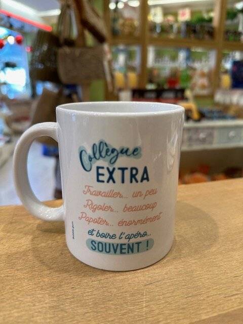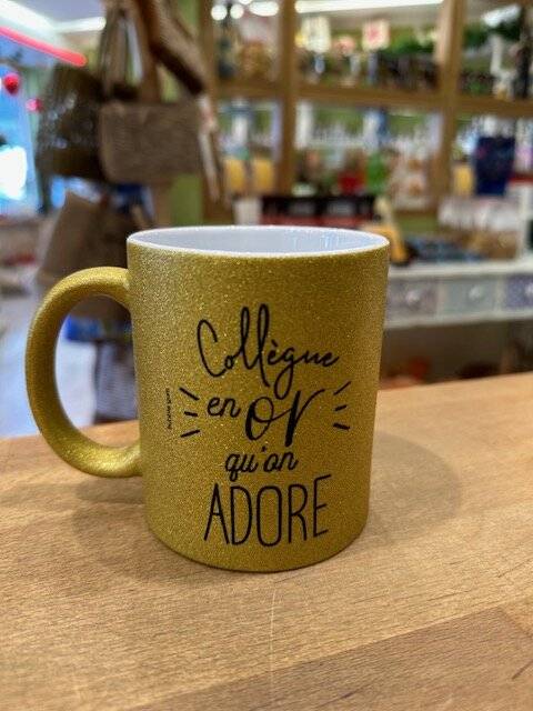 Qui ne rêve pas d’une tasse paillette avec l’inscription « collègue en or qu’on adore » ? ou encore « collègue extra », « mug de mon collègue trop cool » , « mug de ma collègue adorable ».